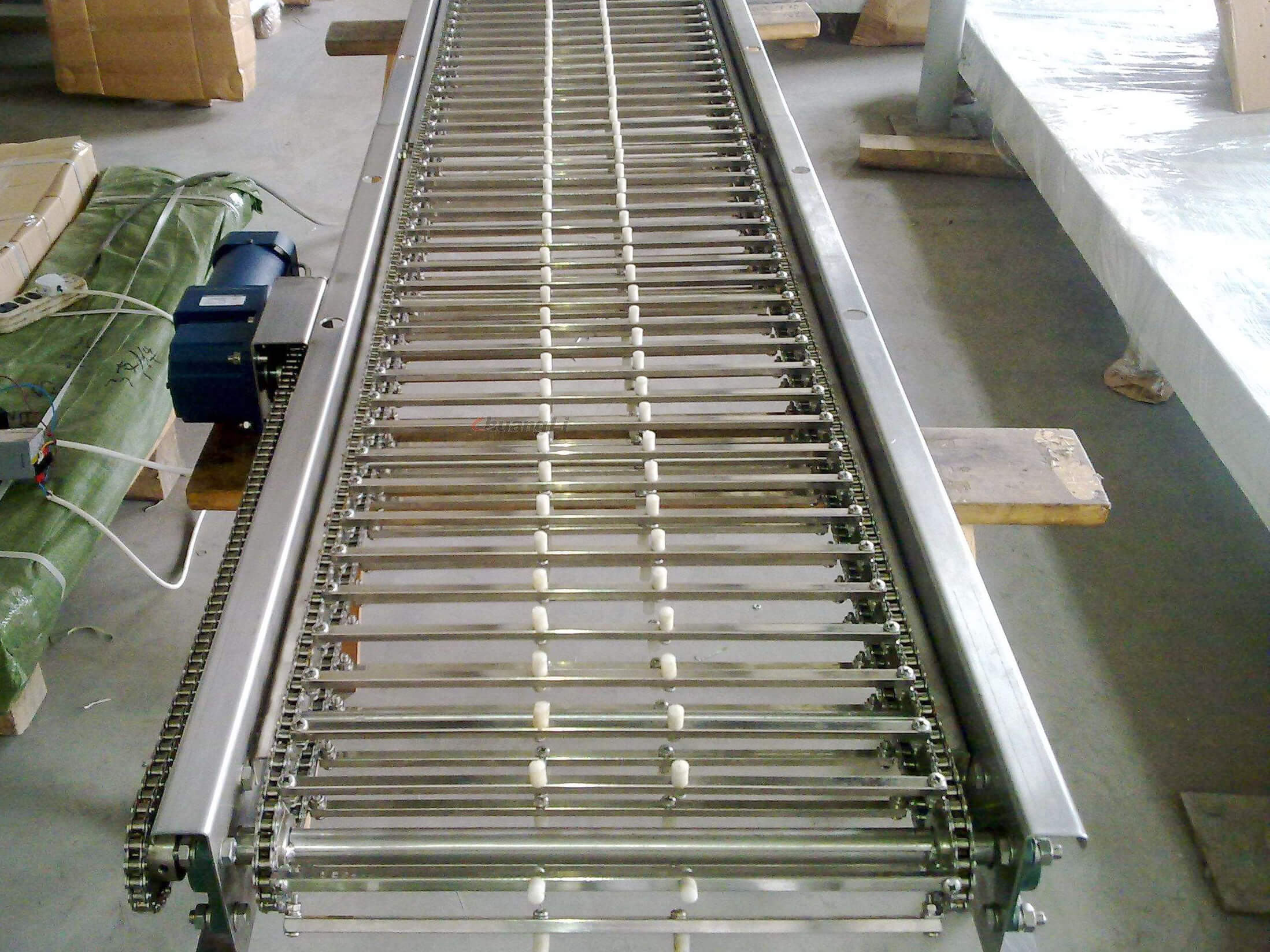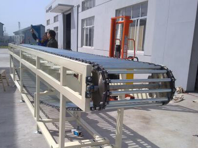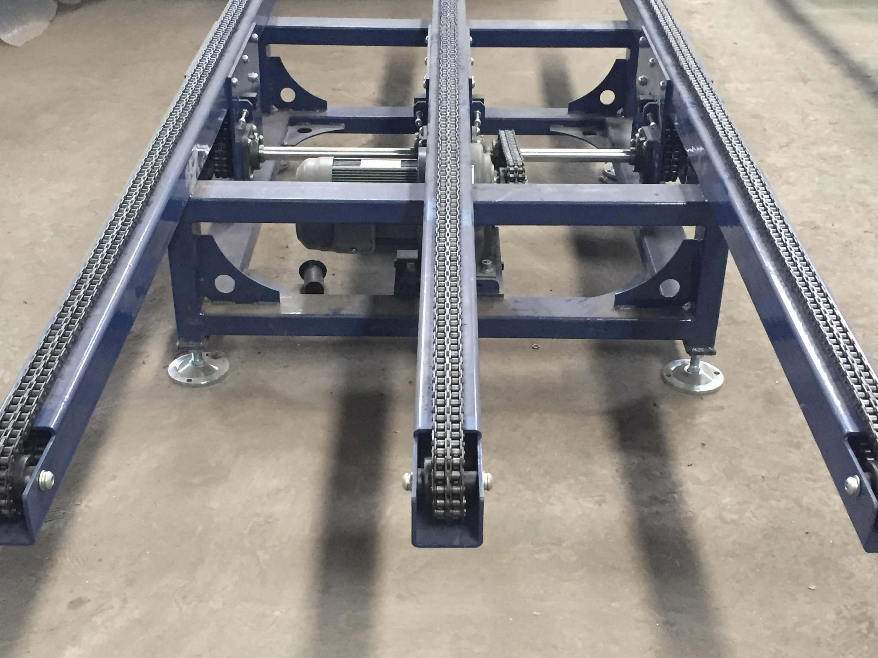 链条输送机是以链条作为牵引和承载体输送物料,链条可以采用普通的套筒滚子输送链,也可采用其它各种特种链条(如积放链,倍速链)。链条输送机的输送能力大,主要输送托盘、