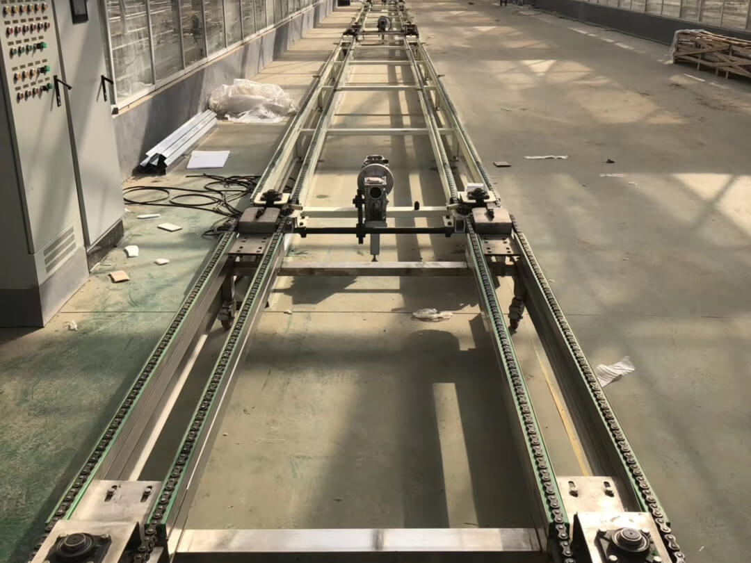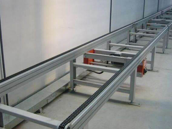 4、链条输送机框架结构可采用铝型材或碳钢(表面磷化处理后喷塑)