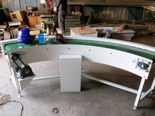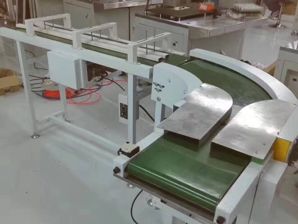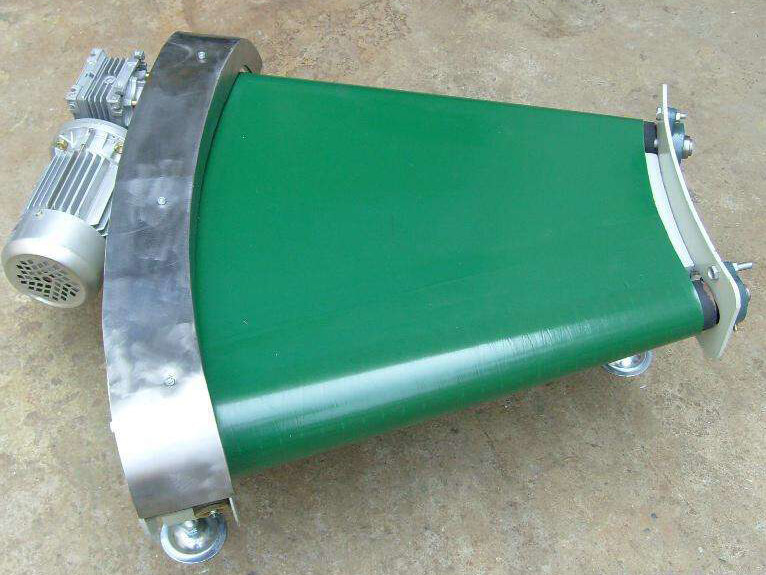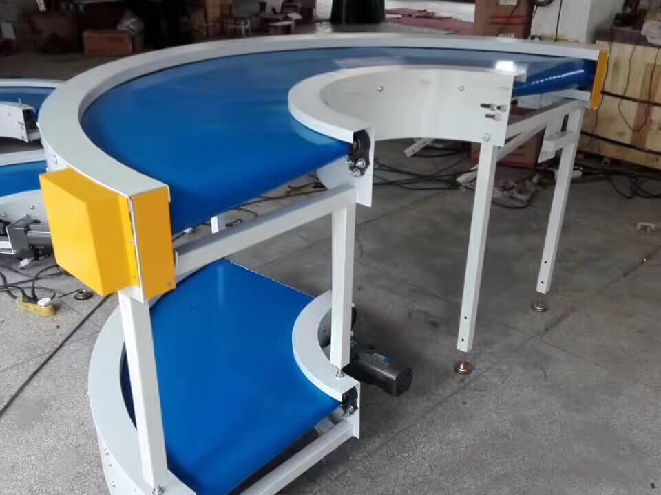 90度转弯机用于设备过渡,周转设备,节约空间省工省力,成本低,厂房面积小是最适合选此设备,在设备之间的衔接及车间拐角处!用于食品木材化工医药果蔬等流水线的辅助设备。转弯输送机是一种使用非常广泛的输送流水线,运用于输送带与输送带之间弯角的连续或间歇运动来输送各种轻重不同的物品。适合中小型产品的组装或输送,可采用单皮带,双皮带,多层皮带输送。速度可调,角度:45度,90度,180度.