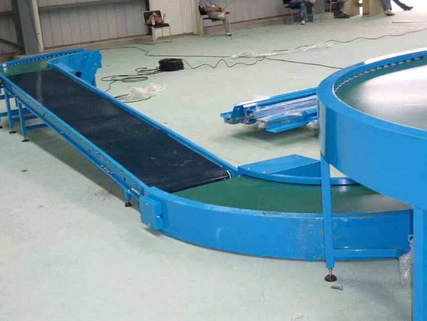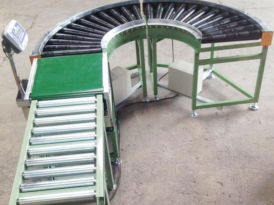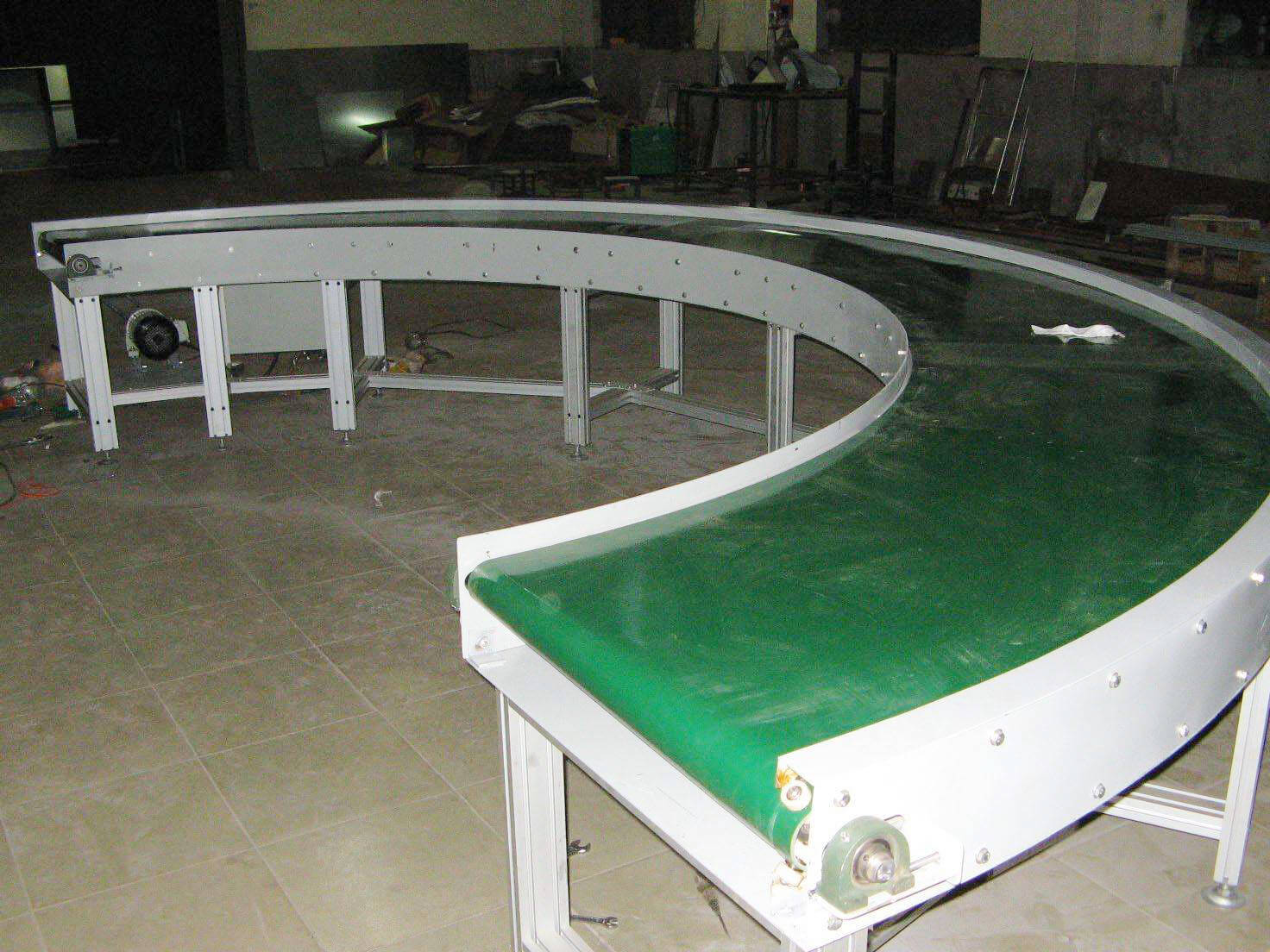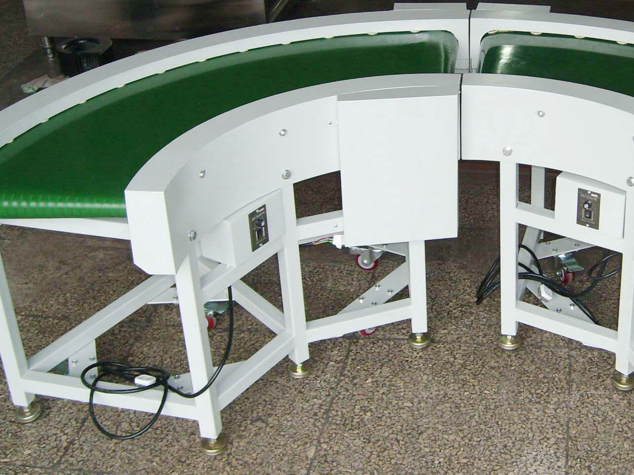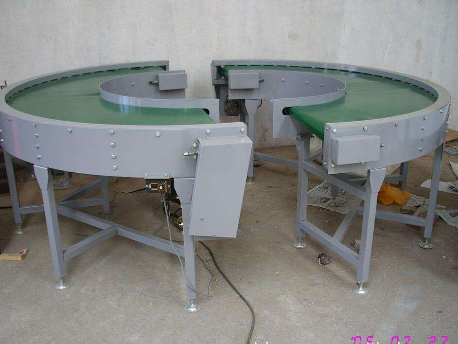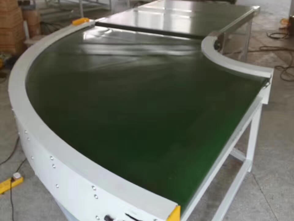 90度转弯机用于设备过渡,周转设备,节约空间省工省力,成本低,厂房面积小是最适合选此设备,在设备之间的衔接及车间拐角处!用于食品木材化工医药果蔬等流水线的辅助设备。转弯输送机是一种使用非常广泛的输送流水线,运用于输送带与输送带之间弯角的连续或间歇运动来输送各种轻重不同的物品。适合中小型产品的组装或输送,可采用单皮带,双皮带,多层皮带输送。速度可调,角度:45度,90度,180度.