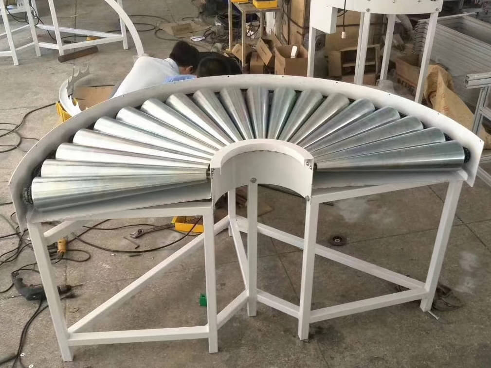 90度转弯机用于设备过渡,周转设备,节约空间省工省力,成本低,厂房面积小是最适合选此设备,在设备之间的衔接及车间拐角处!用于食品木材化工医药果蔬等流水线的辅助设备。